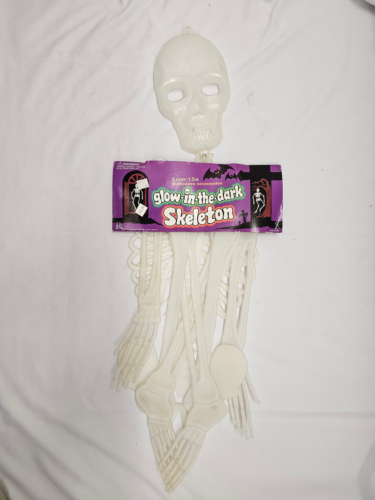 This vintage Halloween Topstone bendable skeleton is a must-have for any Halloween enthusiast. This 5ft skeleton is perfect for creating spooky and eerie atmospheres. It features a glow-in-the-dark effect that adds an extra element of excitement to your Halloween decorations.