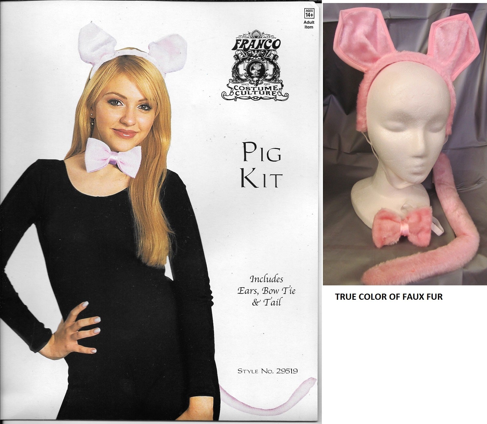 Furry headband with attached cloth ears with shapeable wire, bowtie, tail