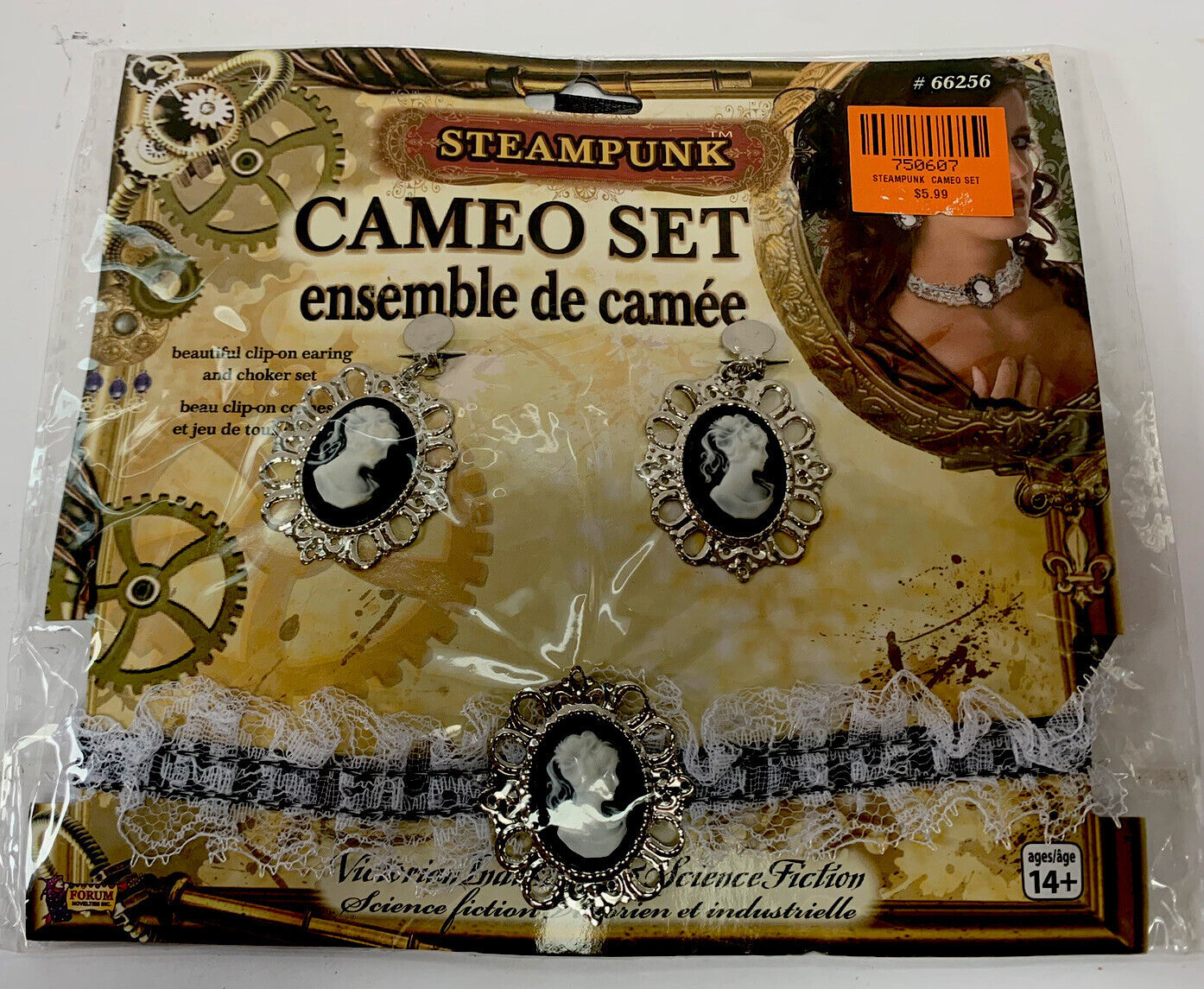 Add an elegant touch to your Halloween costume with this Women's Cameo Steampunk Set complete with a choker adorned with white lace and earrings. This will be sure to identify you immediately as true steampunk aristocracy. If you feel like going back in time instead of forward, this set would also be great for a traditional costume of the time period that inspires the mystical world of whimsy.