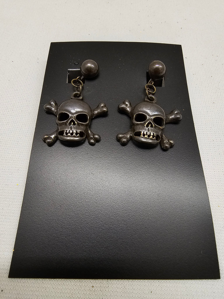 Includes: 2 Black Skull & Crossbones Clip On Earrings