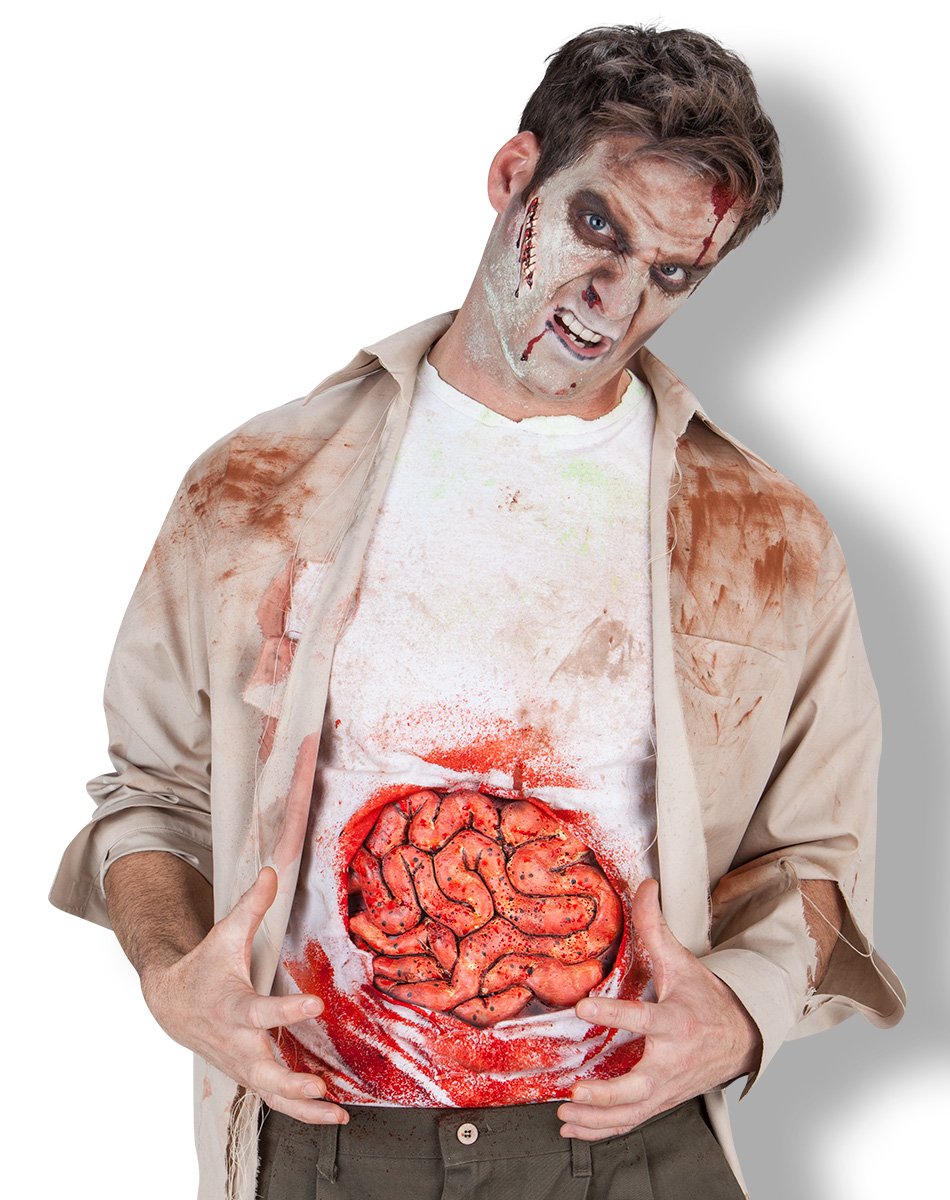Do you have the guts to do this? This costume idea calls for some acting - the fake guts are covered with blood so you can position it to look like you've been eaten alive or worse. Are you hungry enough? The blood spattered fake Guts are made of fabric and latex.