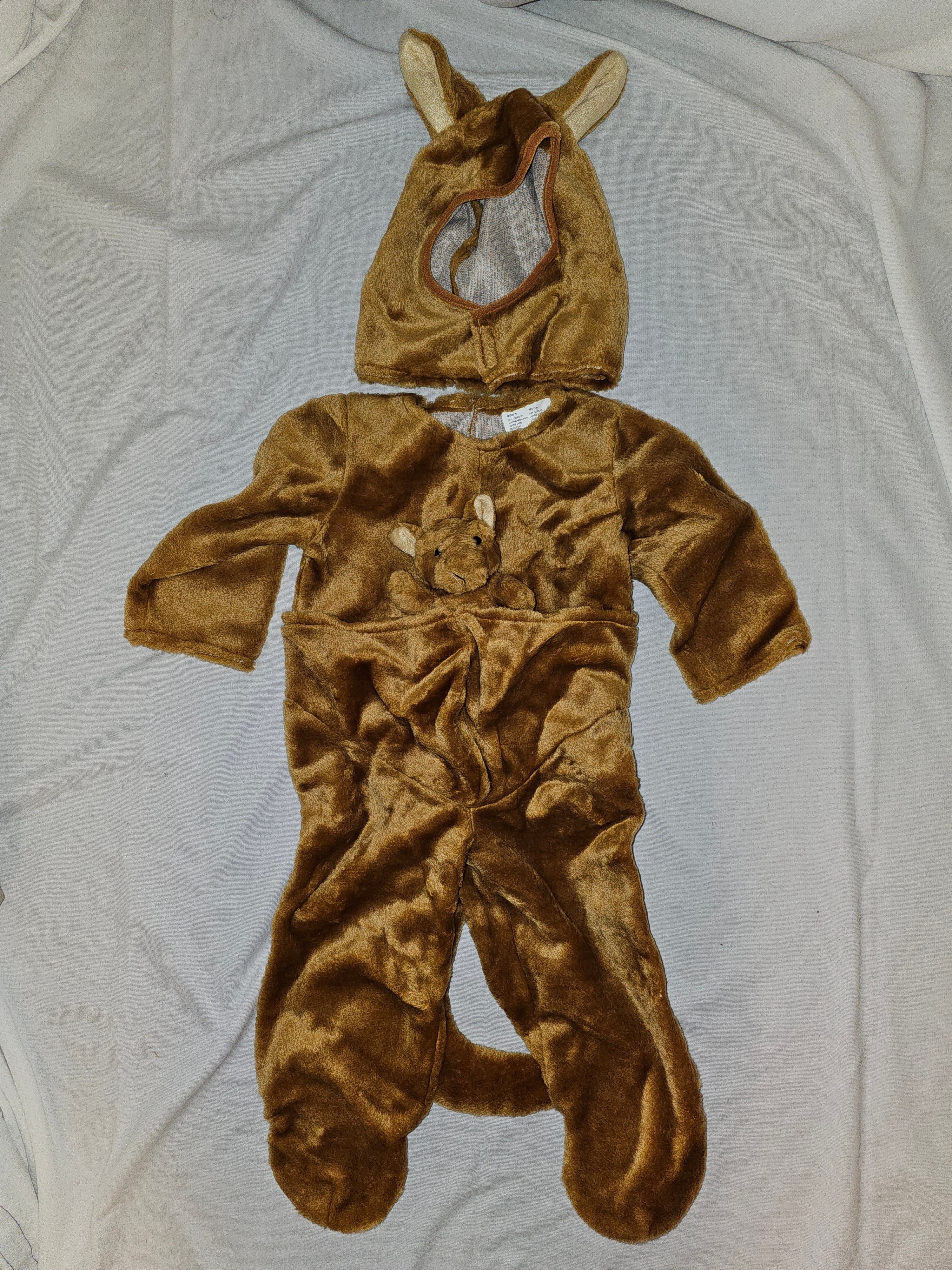 Capture your child at their cutest moments with our infant kangaroo outfit. This high quality infant costume will help keep your little one warm during their Halloween night. A plush jumpsuit with Velcro closure on back, velco attached baby kangaroo in pocket, character feet pads on bottom of feet Character hood with ears and Velcro closure under chin Costume made of 100% polyester Machine wash cool water and tumble dry low