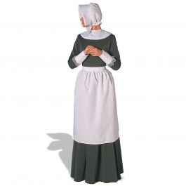 Halloween or a Thanksgiving play would be fitting for this costume kit. These white pieces give you a delicate 16th century feel. Included is a bonnet high-waist apron cuffs and a collar. Complete any Pilgrim woman costume.
