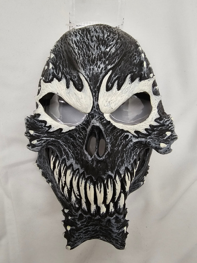 Gray, Black & White skull mask with ghoulish sharp teeth