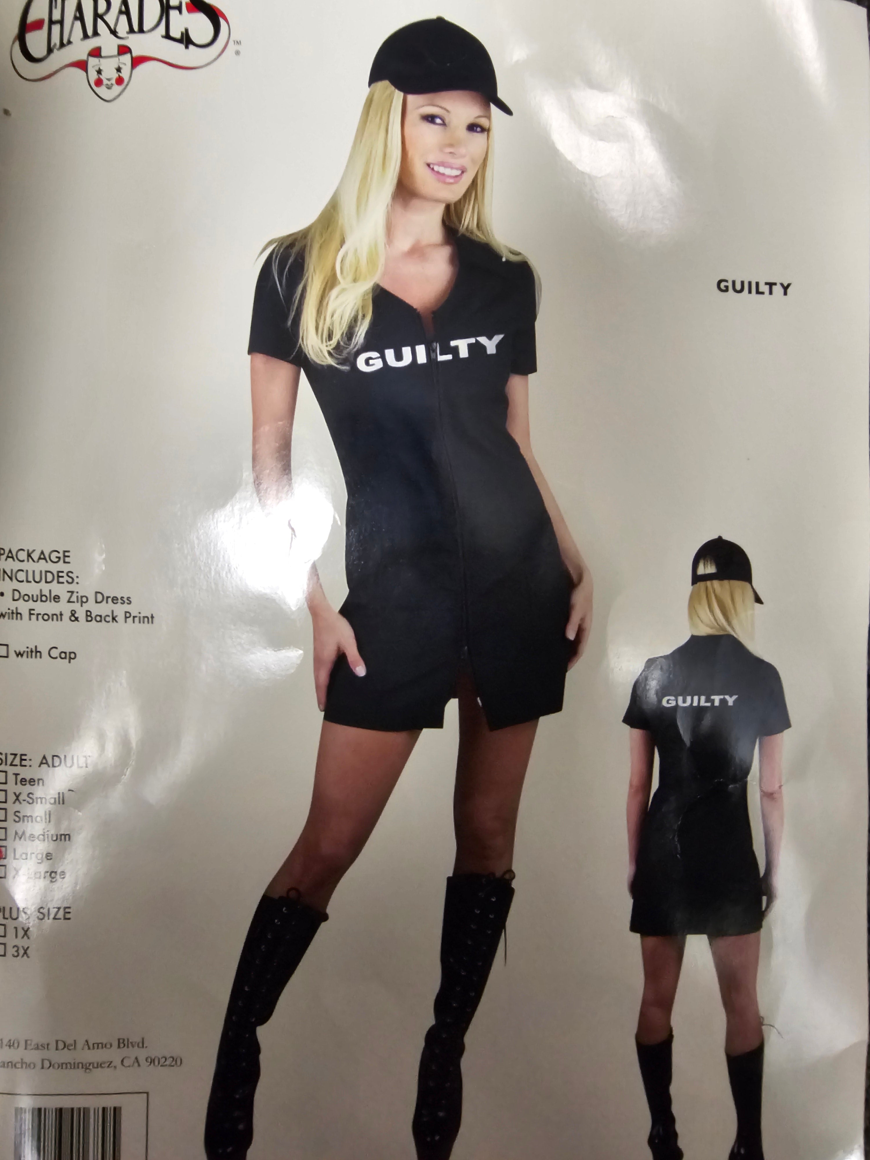 Includes: Double zip dress with front & back printColor: BlackSize: Adult Large