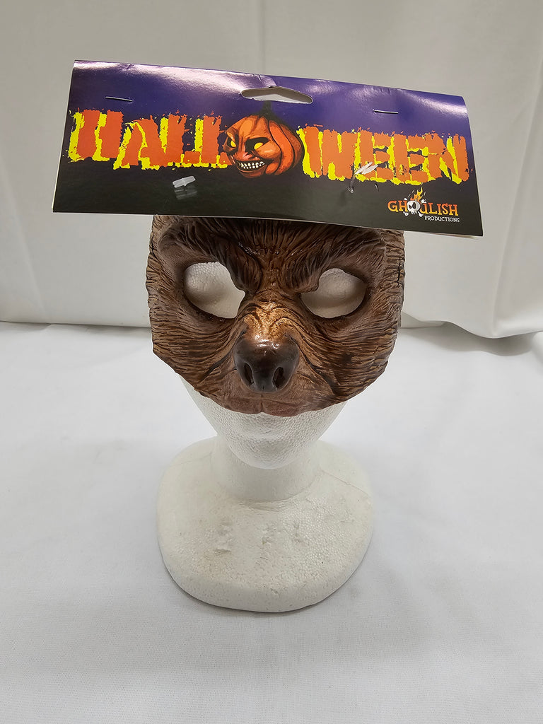 Create or complete the ultimate wolfman costume with this Half Wolf Mask Halloween Accessory. The realistic latex half mask features everything you d expect to find on a professional-quality wolfman mask except the fangs. From its the canine snout to its leathery skin this Halloween wolf mask is truly terrifying.