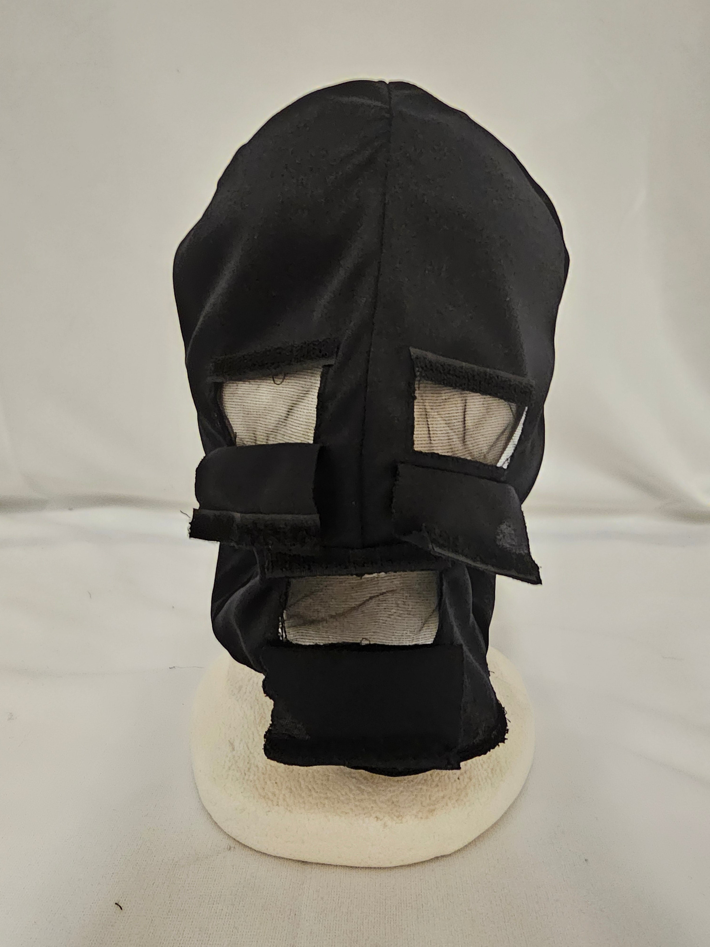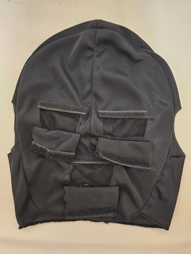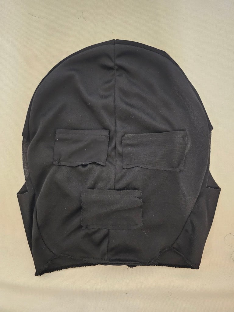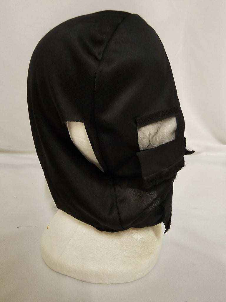 Includes: 1 Face covering S&MHood with velcro eyes & mouth and open ear holes