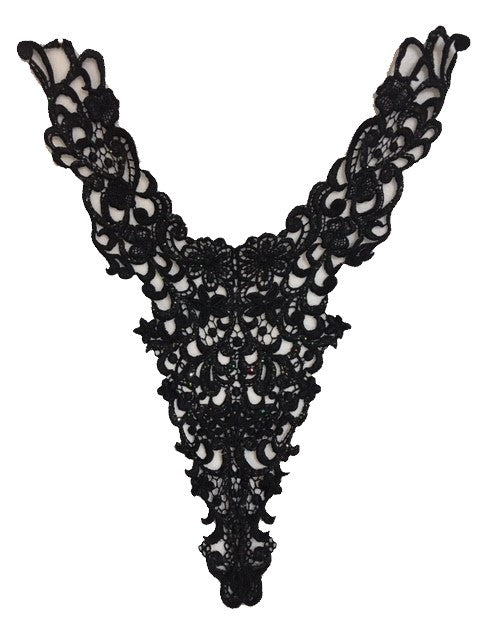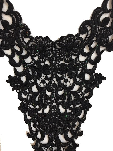 Black Sequined Beaded Lace Applique