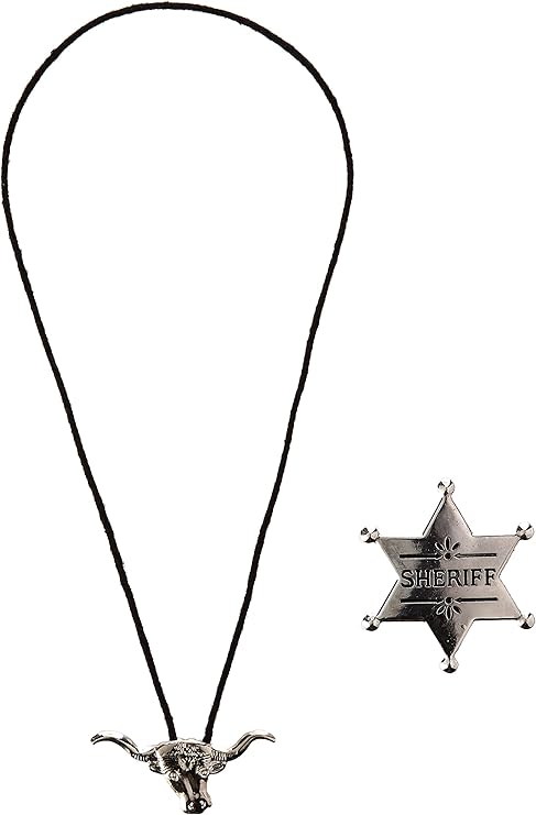 Bolo Tie with steer head on black string and silver Sheriff badge